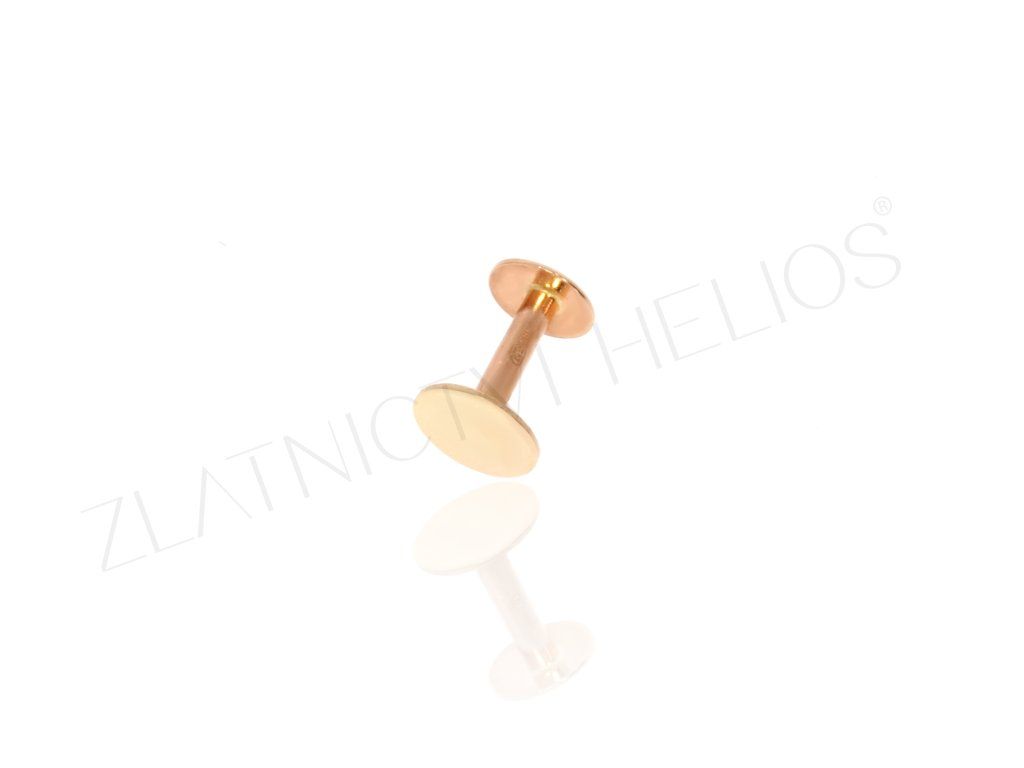 Piercing zlatá labreta, která je určena ke zdobení brady či ucha (helix). Závit je na šroubování.