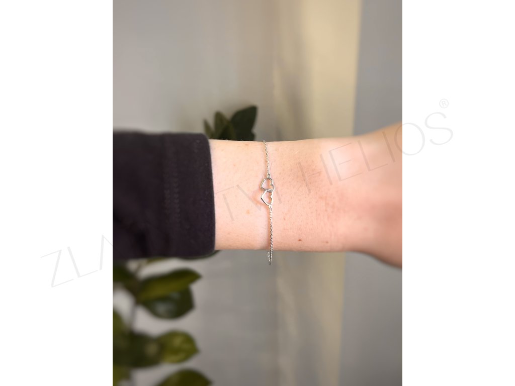Náramek z bílého zlata s vloženými srdíčky bez kamínků. Minimalistický design, oblíbený motiv.