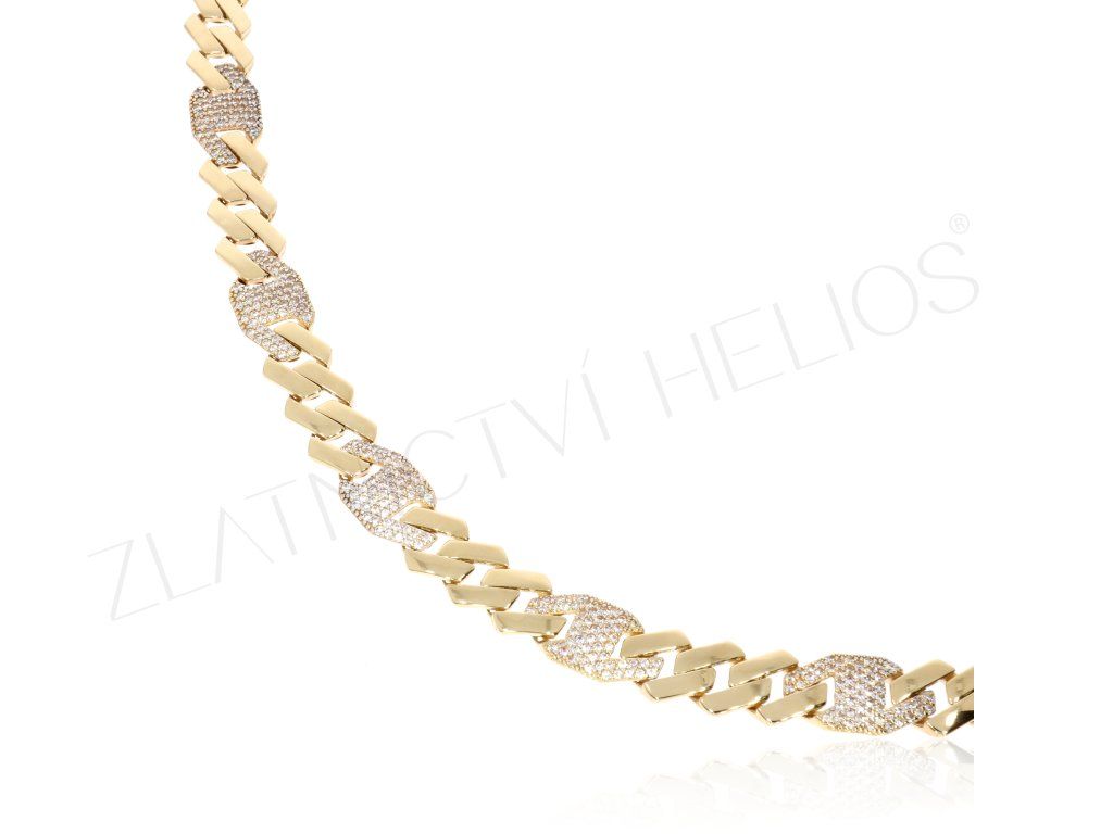 Široký zlatý náramek se zirkony. Vhodný pro muže, nebo ženy se širším zápěstím.