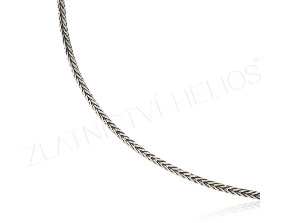Stříbrný náramek v matném, patinovaném provedení ze zapínáním na zajímavě zpracovanou karabinou.