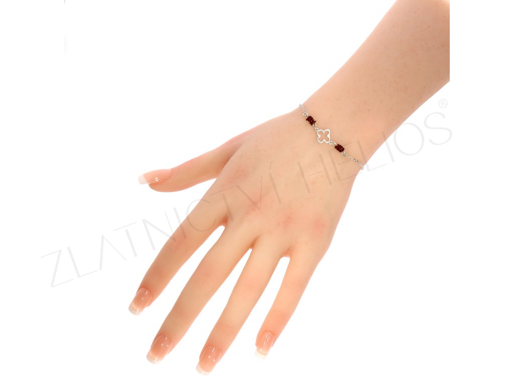 Stříbrný náramek s granáty čtyřlístek