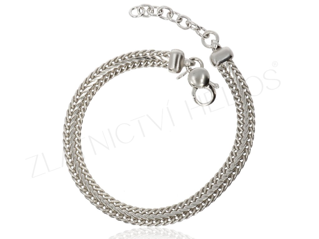 Proplétaný náramek ze stříbra v plochém provedení s možností zapínání v rozmezí 19-21 cm.
