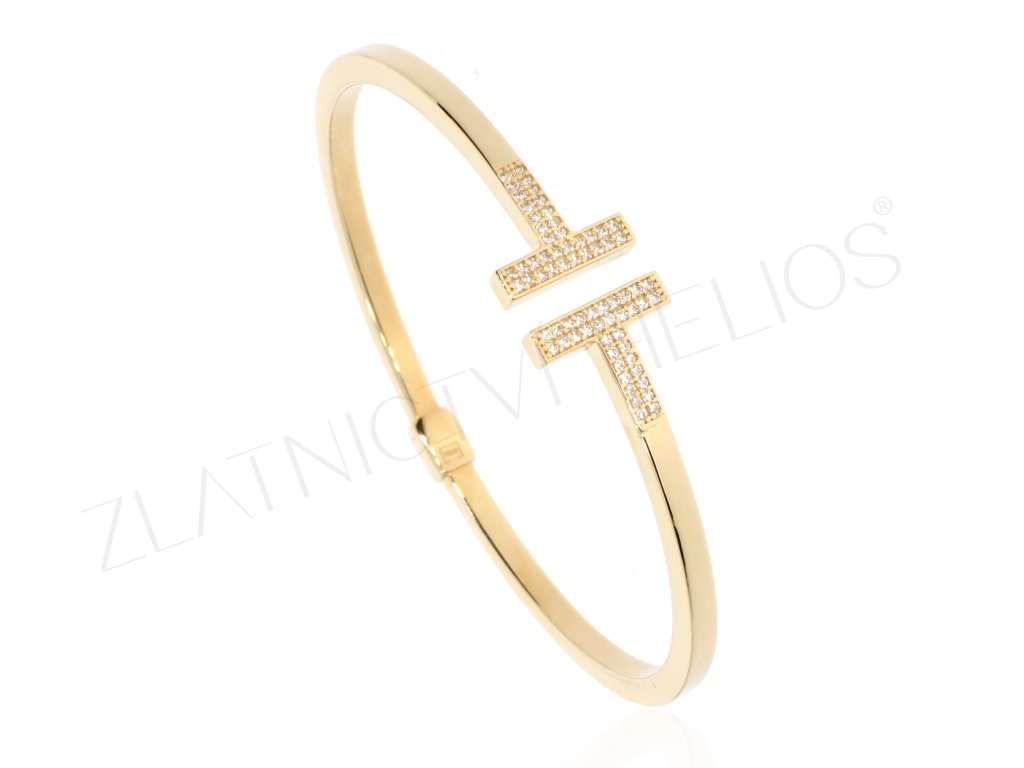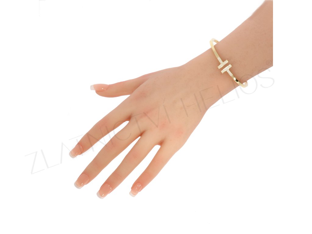 Luxusní zlatý náramek ovál v lesklém provedení zdobený zirkony. Nadčasové design provedení vhodné jako elegantní doplněk.