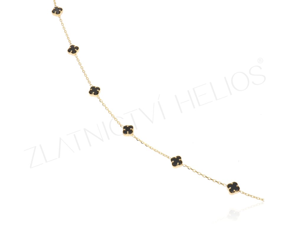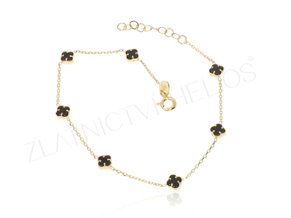 Zlatý náramek s černými čtyřlístky