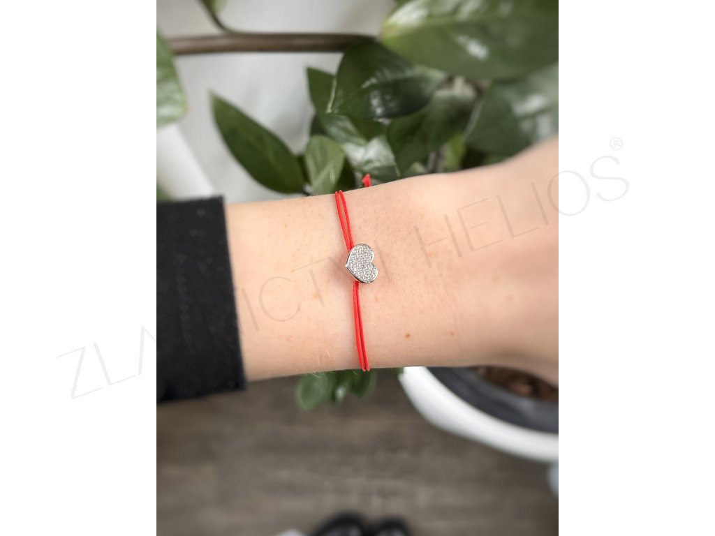 Náramek Shamballa na atraktivní červené šňůrce se zirkonovým srdíčkem.