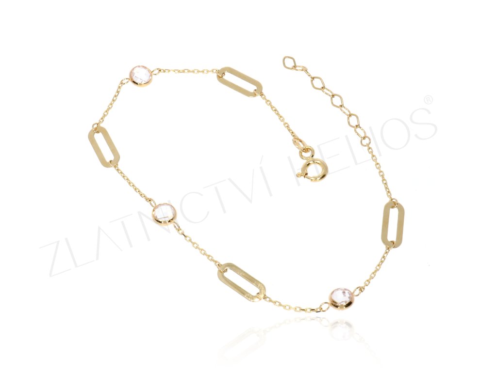 Zlatý náramek zirkony a oválek