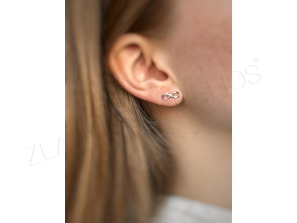 Náušnice nekonečno na šroubek ze bílého zlata ve tvaru nekonečna, zdobené jemnou linií diamantů. Dárek pro ženu či dívku....