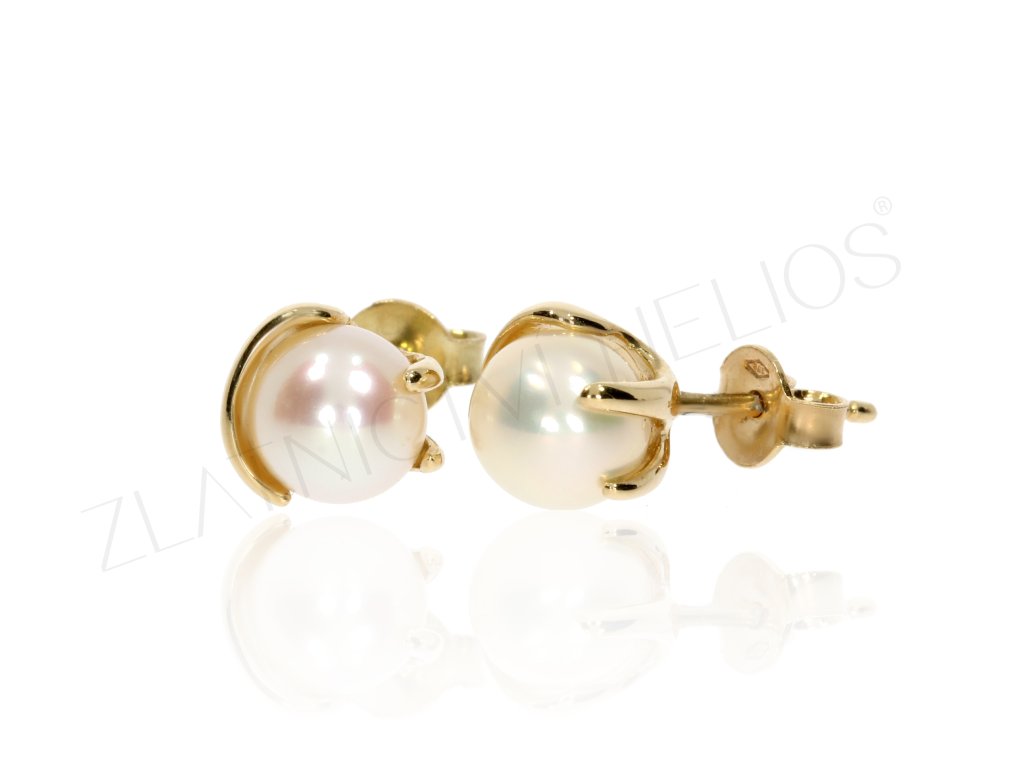 Perly v těchto náušnicích jsou vsazeny do jakoby chapadýlek ze žlutého zlata. Ty obtáčejí a přidržují perlu a barevný kontrast působí velmi pěkně. Náušnice ze žlutého zlata jsou nadčasové a oblíbené.