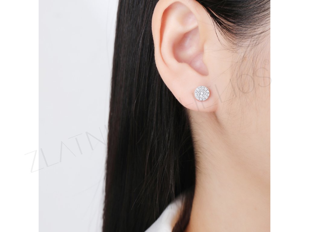 Stříbrné náušnice pecky se zirkony po celé ploše.