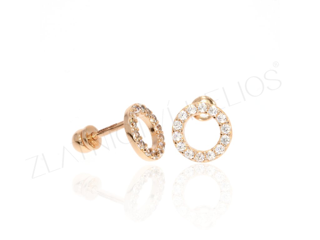 Náušnice kroužky ze zlata na šroubky zdobené zirkony. Moderní minimalistický vzor, který je vhodný pro všechny ženy a dívky . Růžové zlato je velmi krásné a nadčasové.