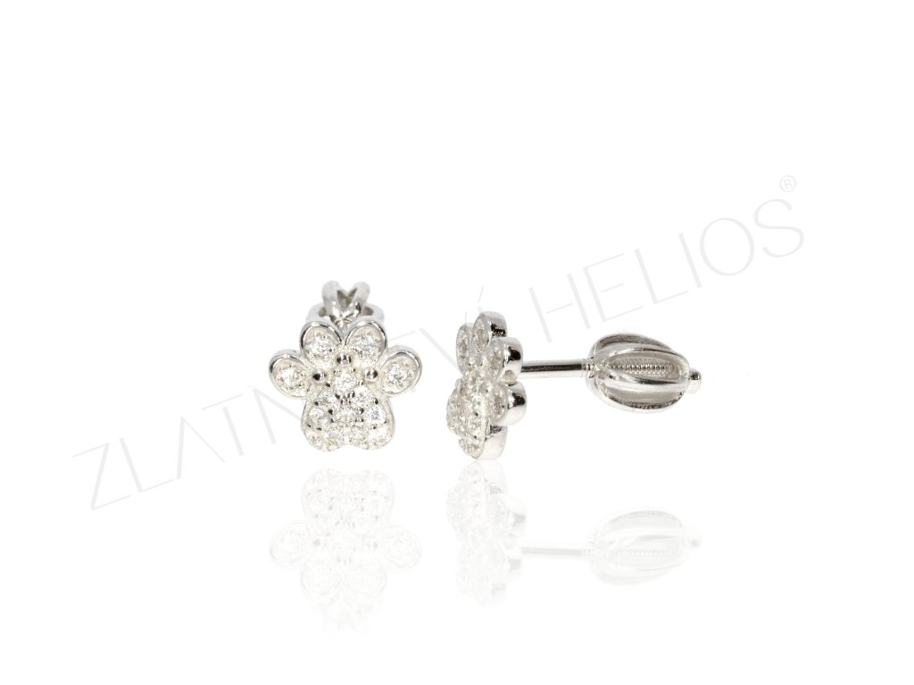 Pacička se zirkony. Stříbrné náušnice pro ženy i dívky ve tvaru tlapky.