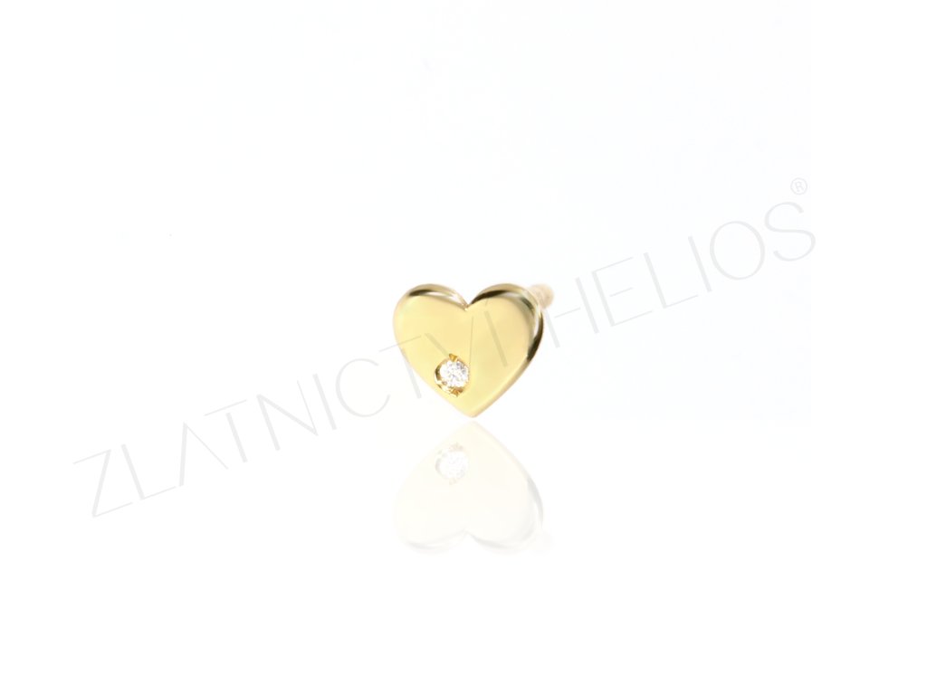 Zlatá kusová náušnice srdíčko