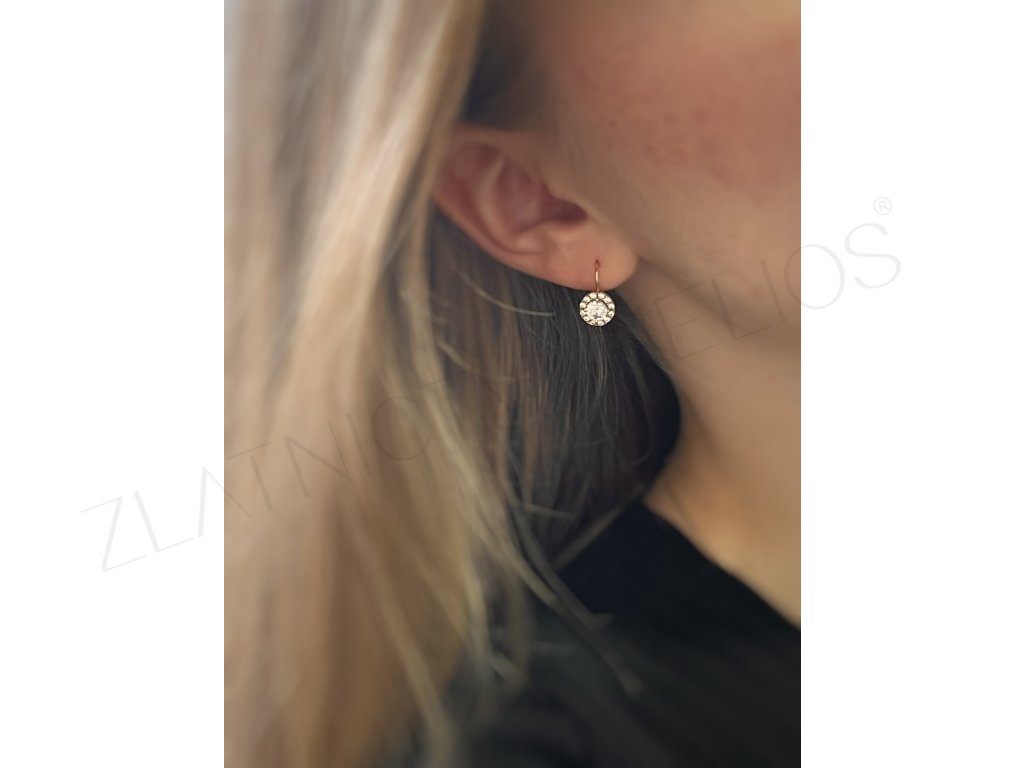 Žádané zlaté náušnice na patenty. Zirkony menších velikostí krásně rozzáří středový větší kámen.