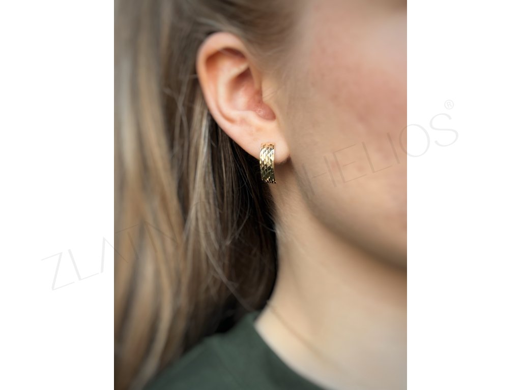 Náušnice ze žlutého zlata zdobené rytinou, která dodává tomuto šperku třpyt.
