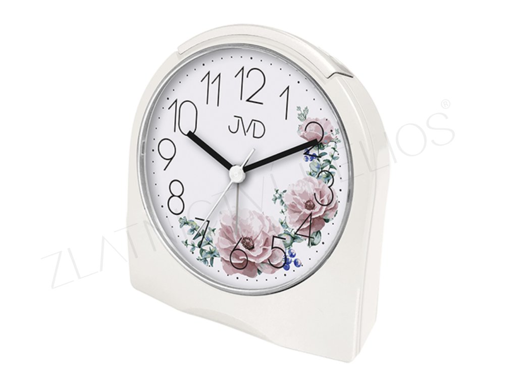 Bílý budík s květinami
