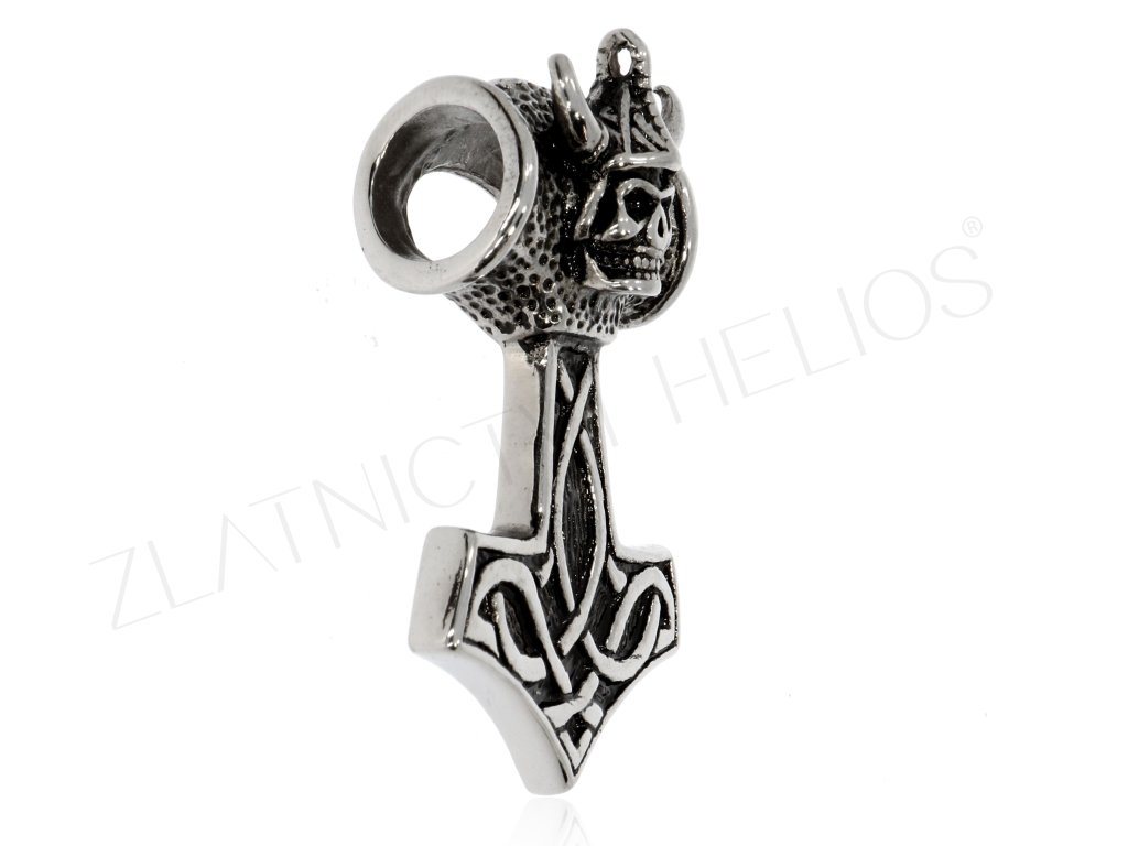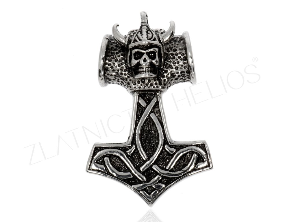Ocelový doplněk s vikingem pro muže. Motorkářský přívěsek zdobený černou patinou.