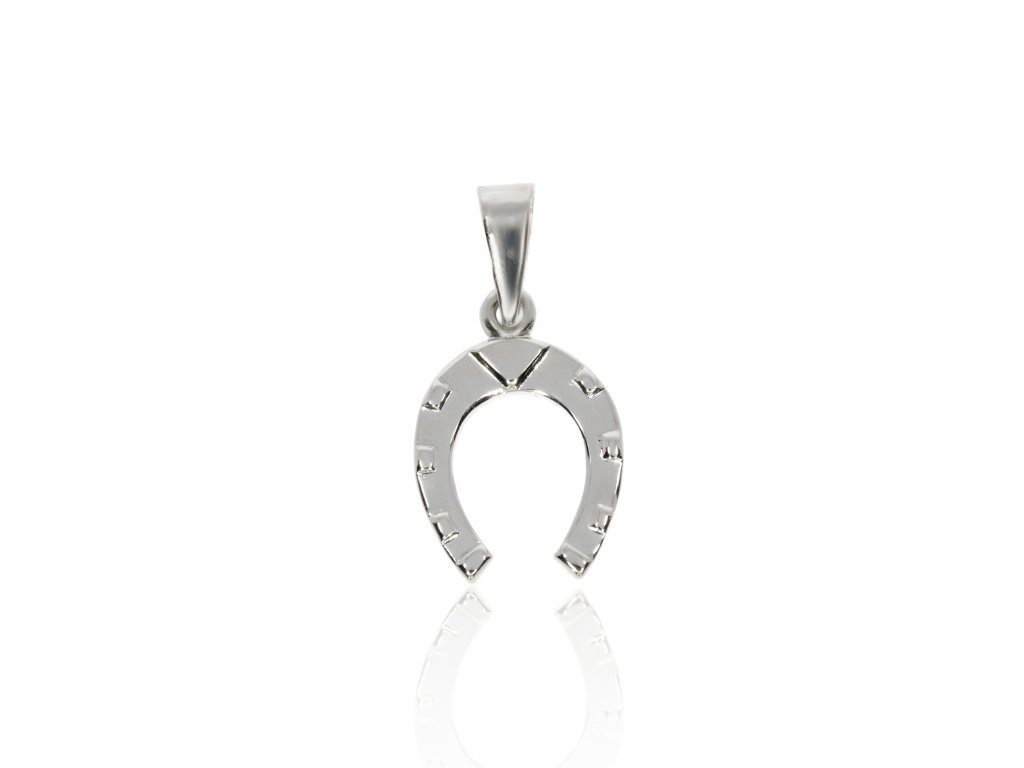 Drobná podkovička z bílého zlata. Přívěsek pro štěstí vhodný pro děti, ženy i muže.