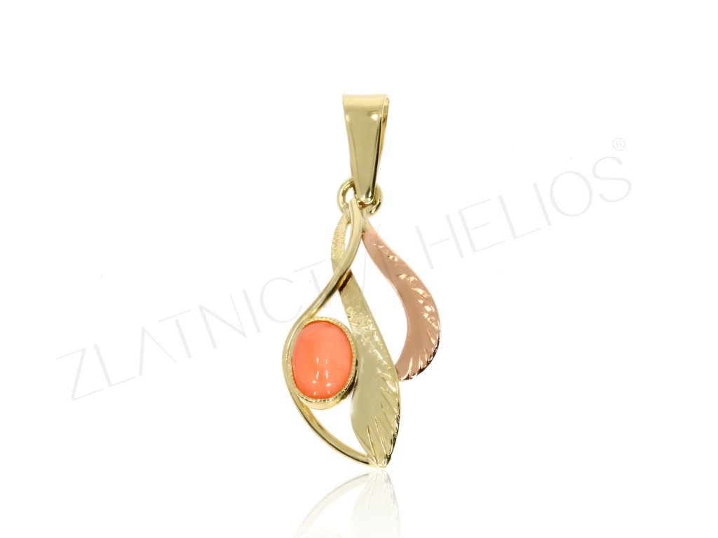 Přívěsek s korálem vyrobený z kombinovaného zlata.