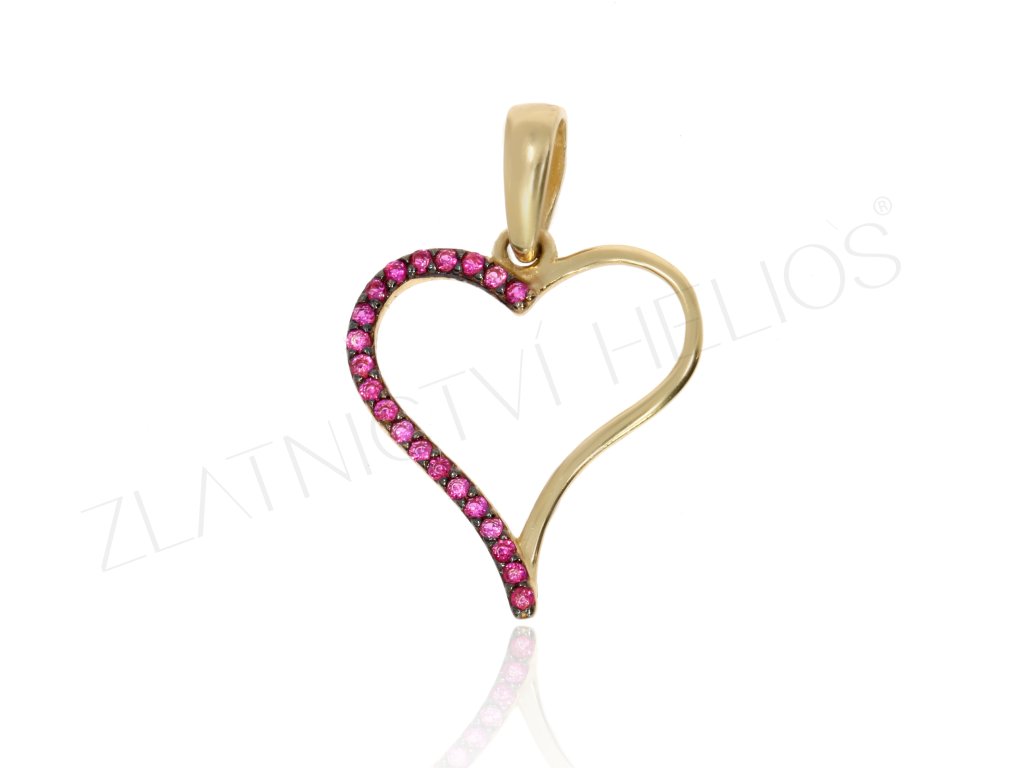 Zlatý přívěsek srdce se zirkony na jedné jeho polovině.