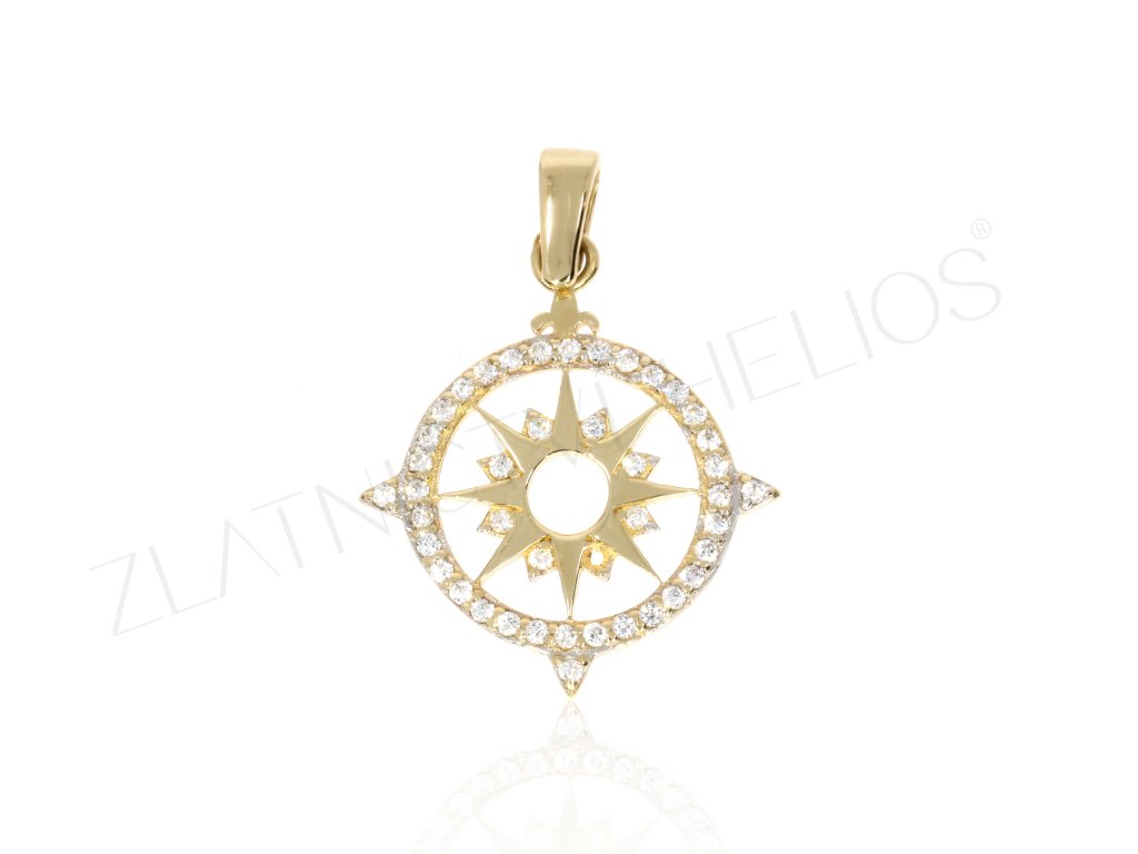 Kompas ze žlutého zlata zdobený zirkony. Přívěsek pro ženy.