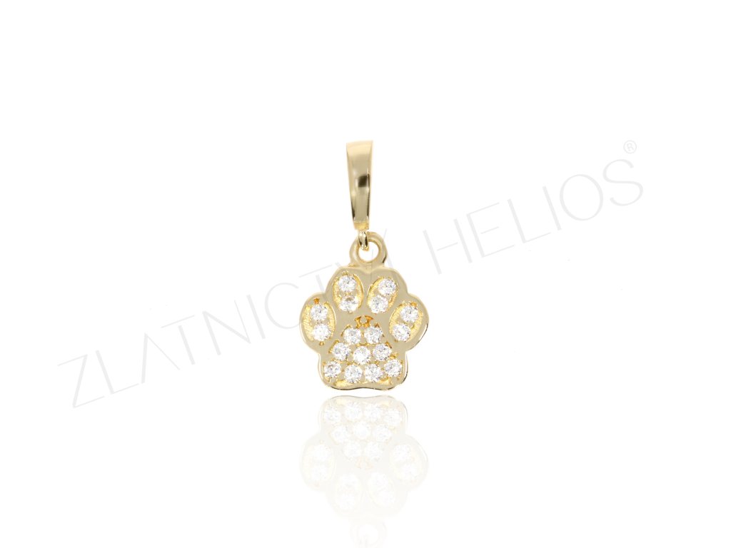 Pacička ze žlutého zlata pro milovníky zvířátek. Tlapka drobný přívěsek posázený zirkony lze nosit na řetízku, náušnici i náramku.