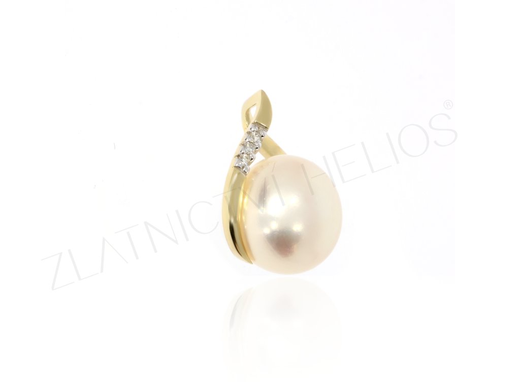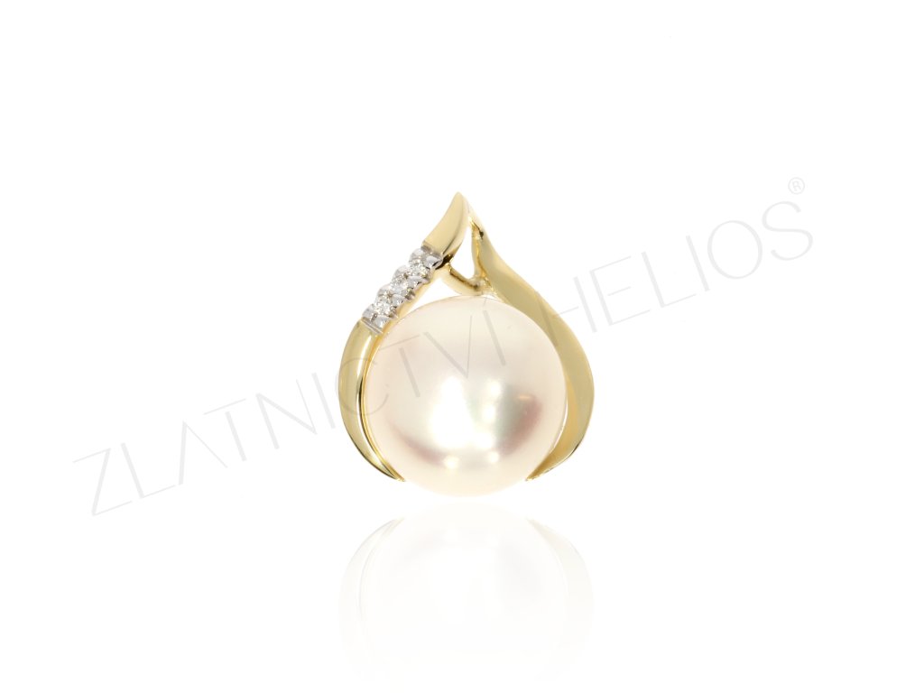 Přívěsek ze žlutého zlata ozdobený říční perlou a diamanty. Nadčasové Perly jsou u tohoto přívěsku doplněny o zářivé diamanty v jemné linii nad perlou. V naší nabídce najdete také náušnice a prsten ve stejném designu.