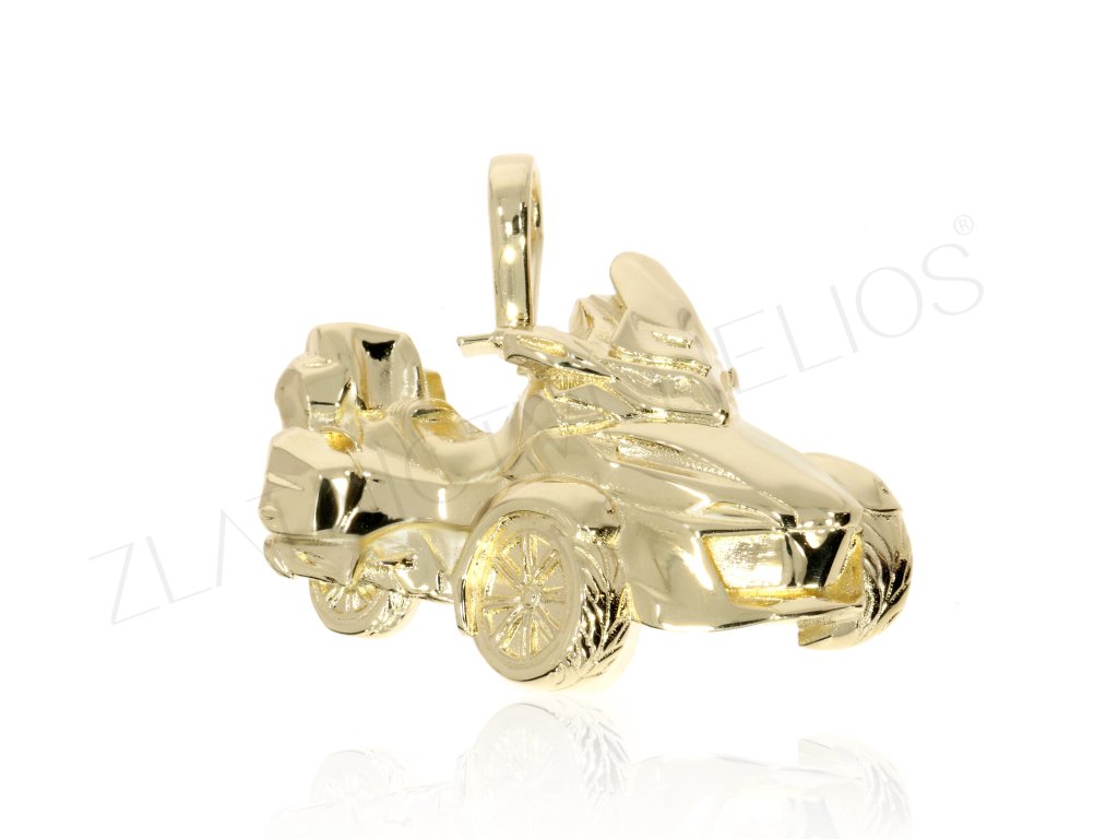Přívěsek ze žlutého zlata pro muže i ženy. Tříkolka Can-Am Spyder
