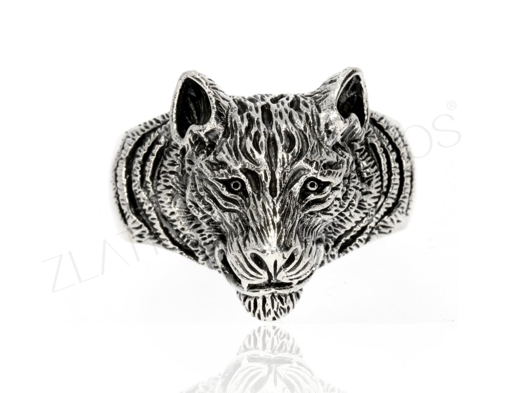 Stříbrný prsten tygr