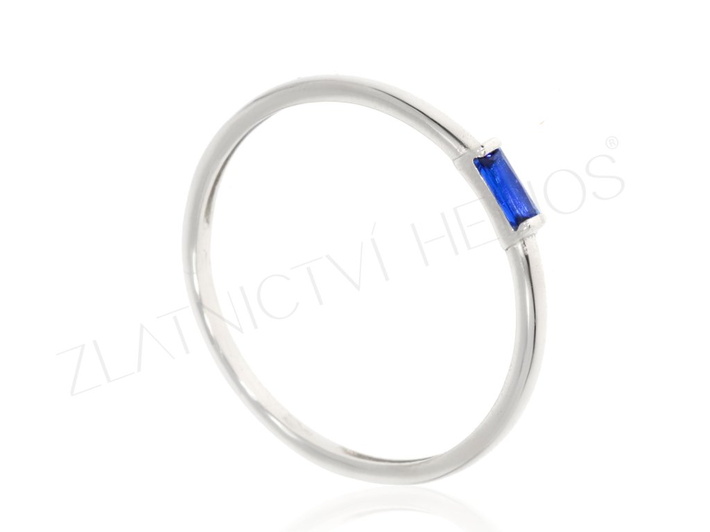 Decentní prsten z bílého zlata s modrým zirkonem.