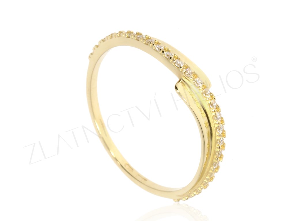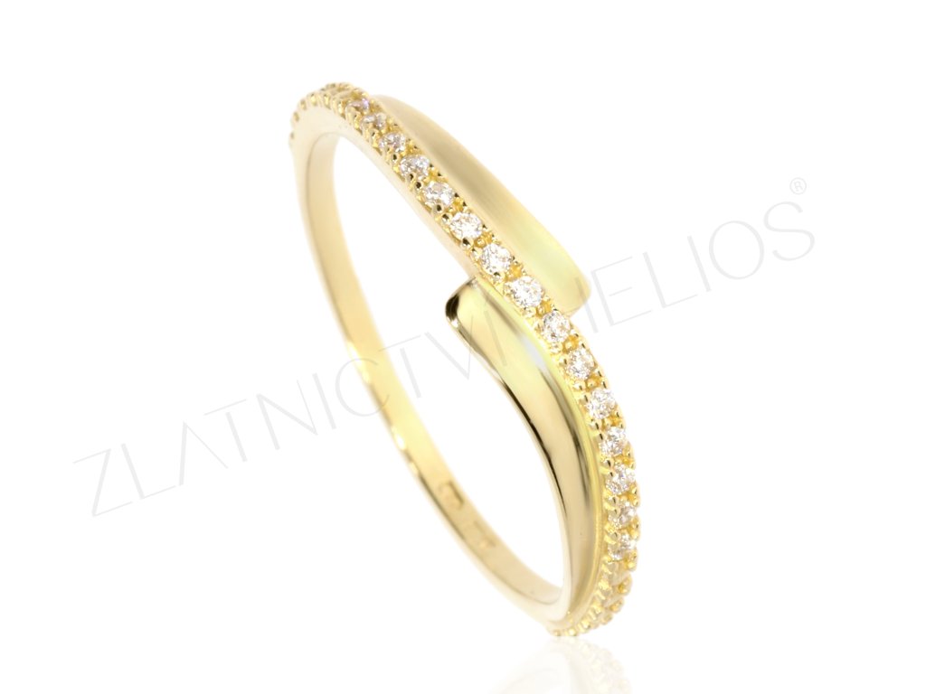Zlatý prsten zdobený jemnou linií zirkonů. Decentní, elegantní prsten ze žlutého zlata- dárek pro ženu k narozeninám, výročím, nebo jen tak z lásky...