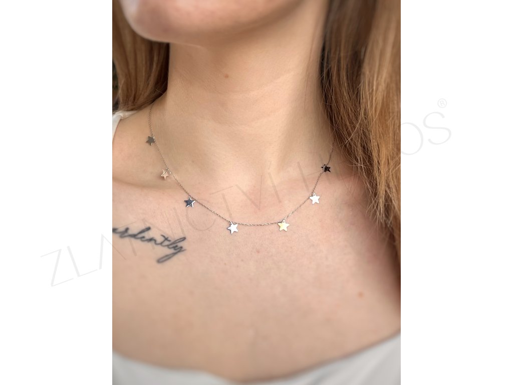 Náhrdelník z bílého zlata, který je doplněn 7 hvězdičkami. V nabídce máme i náramek do sady.