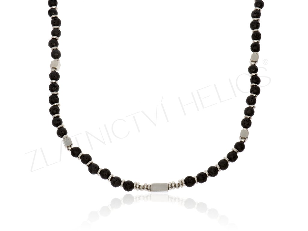 Kuličkový náhrdelník z lávových kamenů a chirurgické oceli.