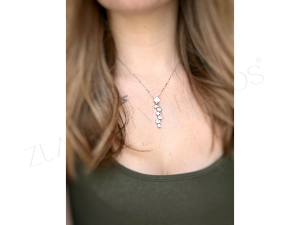 Elegantně laděný náhrdelník zdobený třpytivými zirkony je vyroben ze stříbra. Krásně ladí s náušnicemi s naší nabídky.