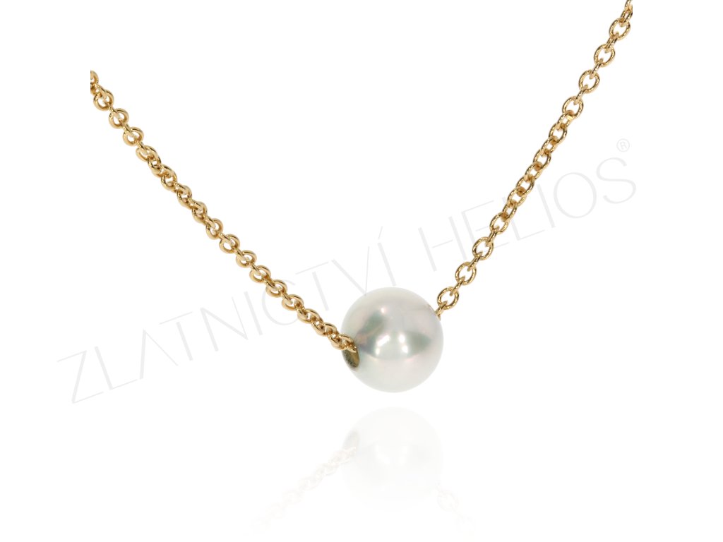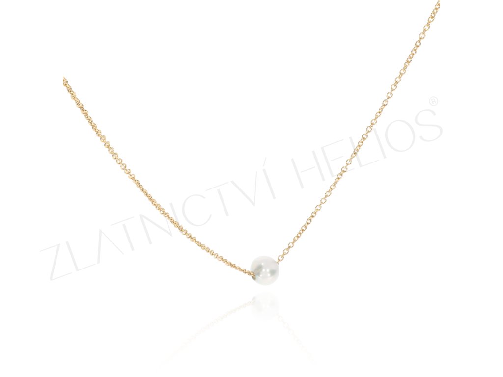 Řetízek ze zlata zdobí perla, která klouže volně po řetízku. Trendy šperk v minimalistickém duchu.