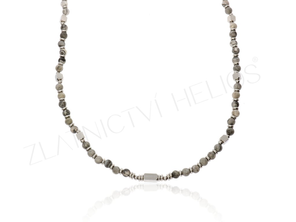 Náhrdelník z chirurgické oceli a kuliček jaspis vhodný pro muže i ženy. Jaspis posiluje váš klid a stabilitu. Je kamenem, který chrání před negativními vlivy.