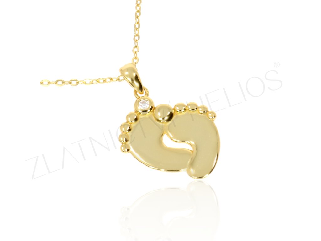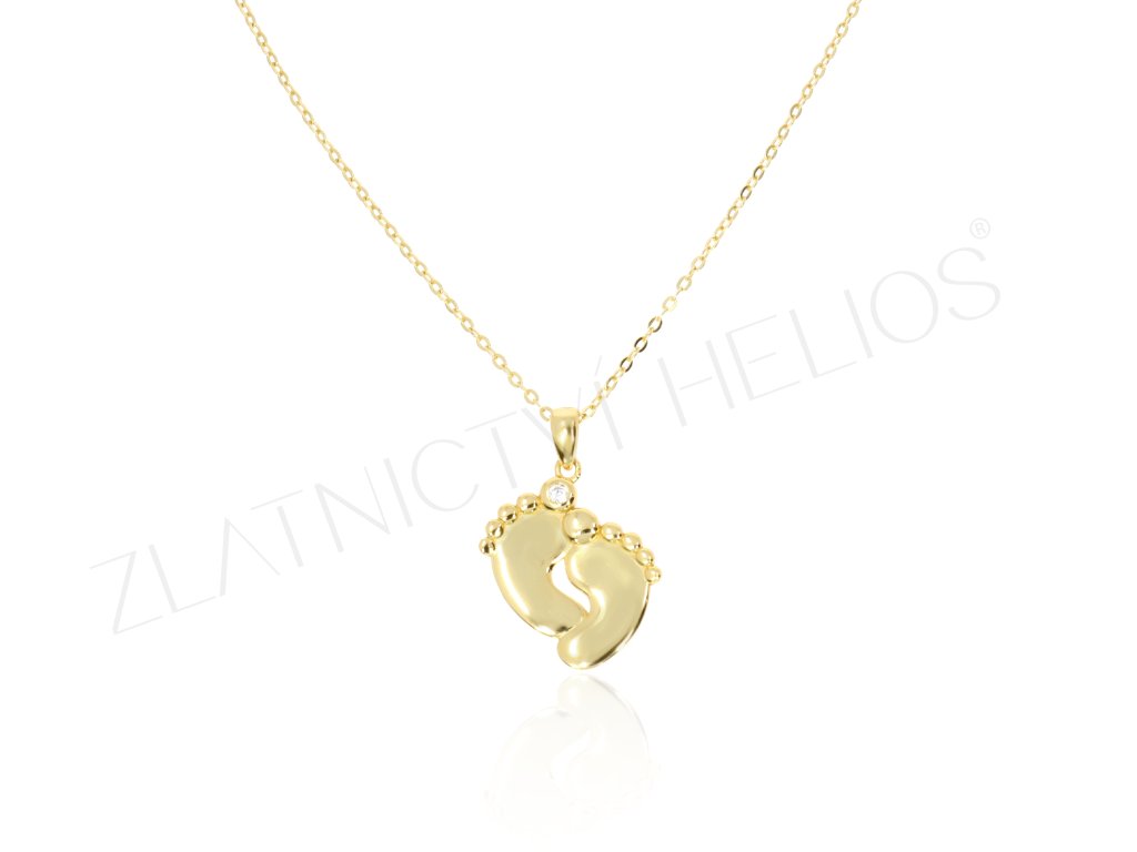 Stříbrný zlacený řetízek s přívěskem ve tvaru dětských nožiček s jedním zirkonem. Nožičky lze doplnit o rytí jmen či data... Dětské nožičky jsou oblíbený motiv, dárek pro maminky.