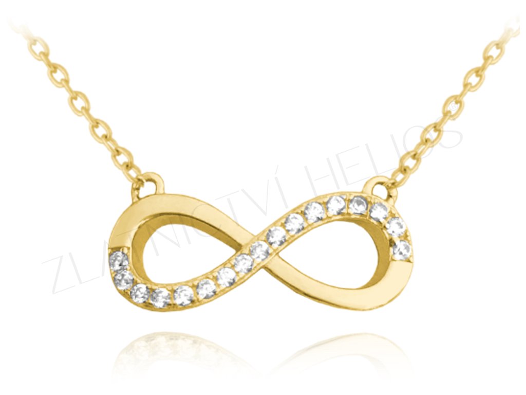 Náhrdelník ze zlaceného stříbra se symbolem nekonečna. Zdobený bílými zirkony.