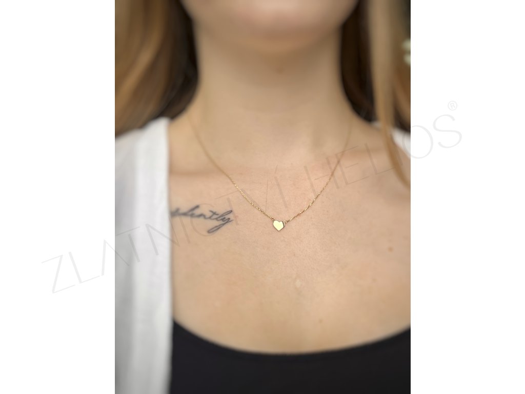 Řetízek ze žlutého zlata s vloženým drobným srdíčkem v lesklém provedení. Srdíčko lze doplnit o rytinu písmena, nebo čísla...