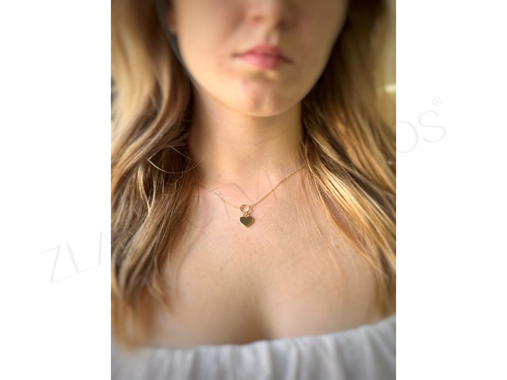 Zlatý náhrdelník se srdcem, které je vhodné ke gravírování jména, data....
