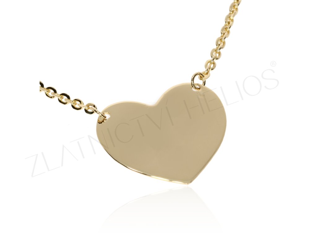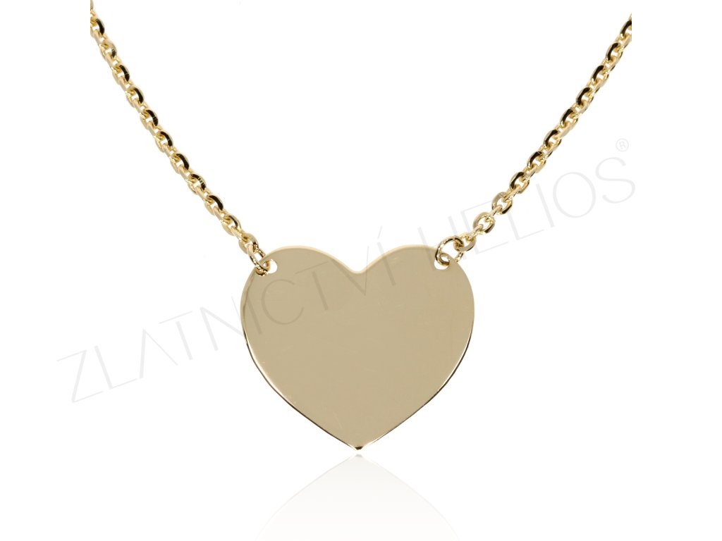 Zlatý náhrdelník se srdcem, které je vhodné ke gravírování jména, data, kratšího textu...