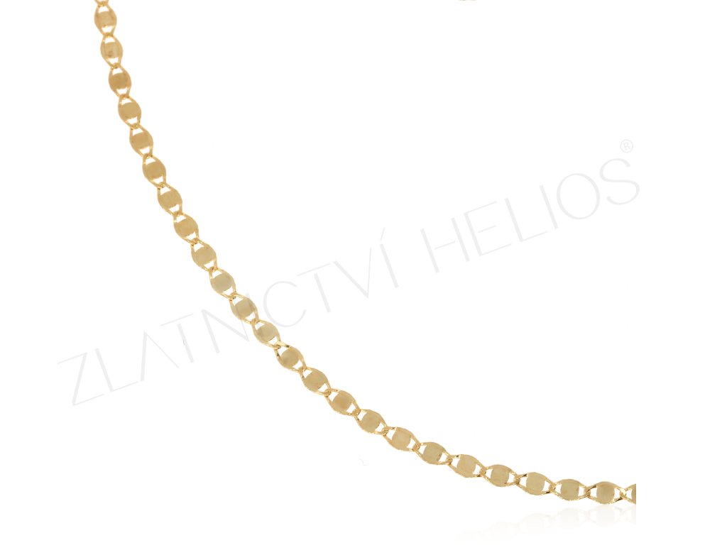 Oblíbený zlatý řetízek zdobený lesklými plochými očky v různých délkách.