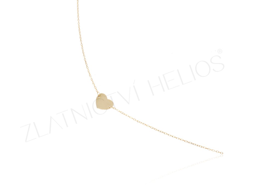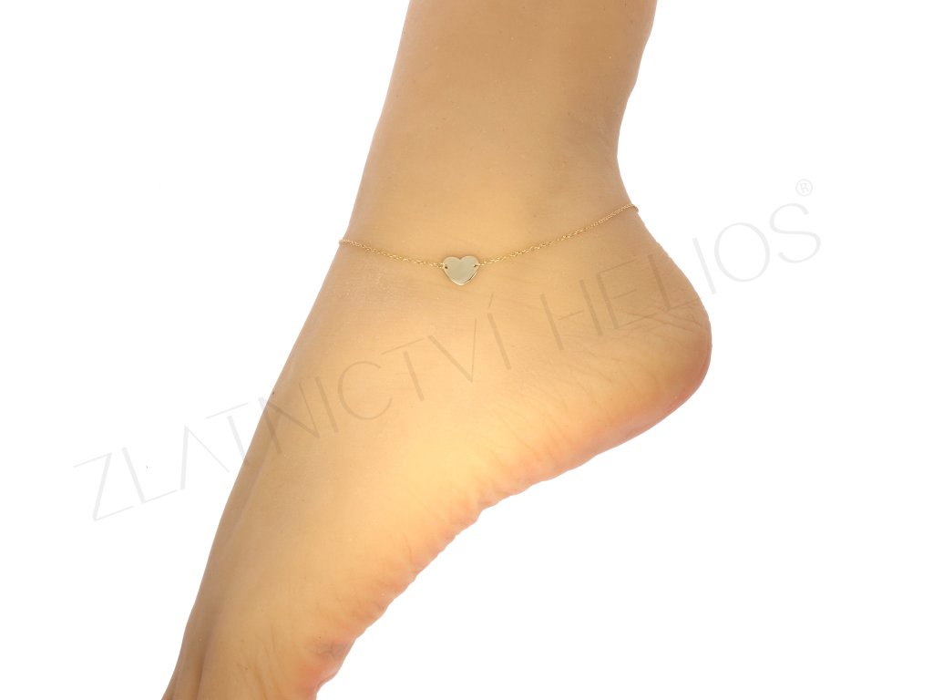 Jemný řetízek na kotník vyrobený ze žlutého zlata, který je dozdoben vloženým srdíčkem.