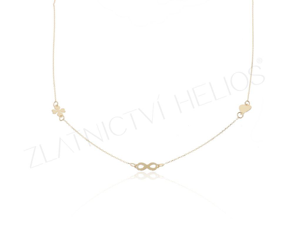 Zlatý řetízek nekonečno, srdce a čtyřlístek