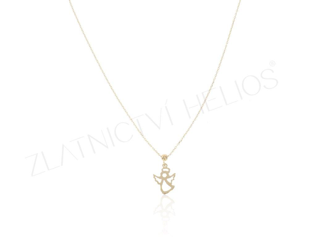 Náhrdelník ze žlutého zlata, který je ozdobený andílkem.