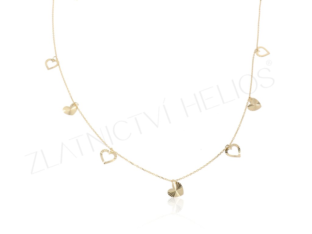 Náhrdelník ze žlutého zlata zdobený srdíčky, které jsou ryté.