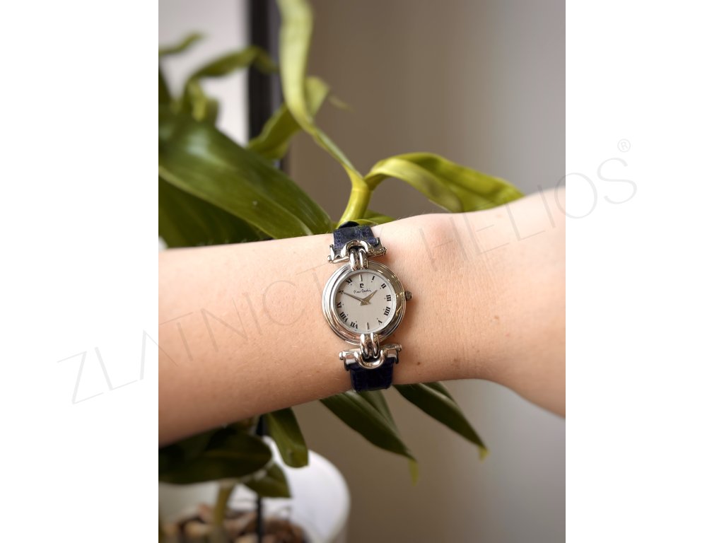 Dámske menšie hodinky. Kvalitná Francúzska značka Piere Cardin známa svojimi dizajnovými kúskami. Tmavo modrý remienok podčiarkne lesk nerezovej ocele.