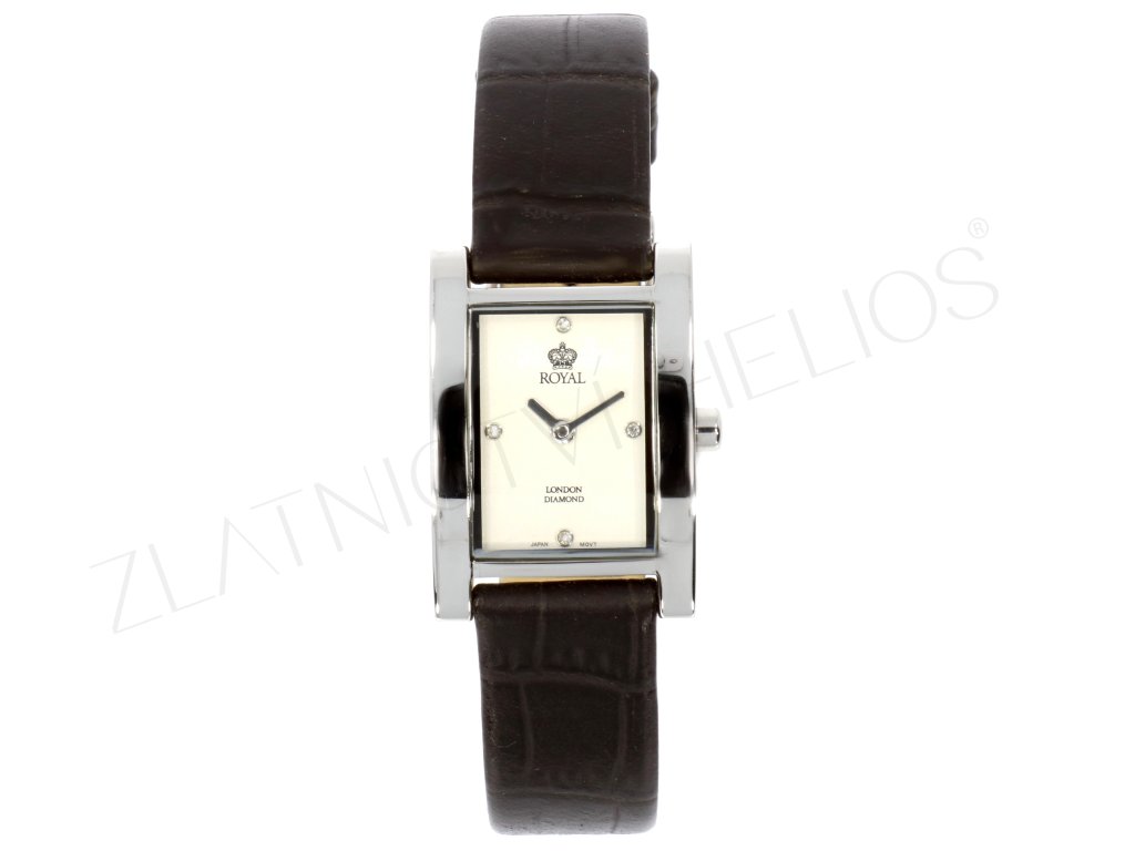 Dámske hodinky Royal London vynikajú svojim decentným štýlom a ich ciferník je vysadený štyrmi kusmi prírodných diamantov.