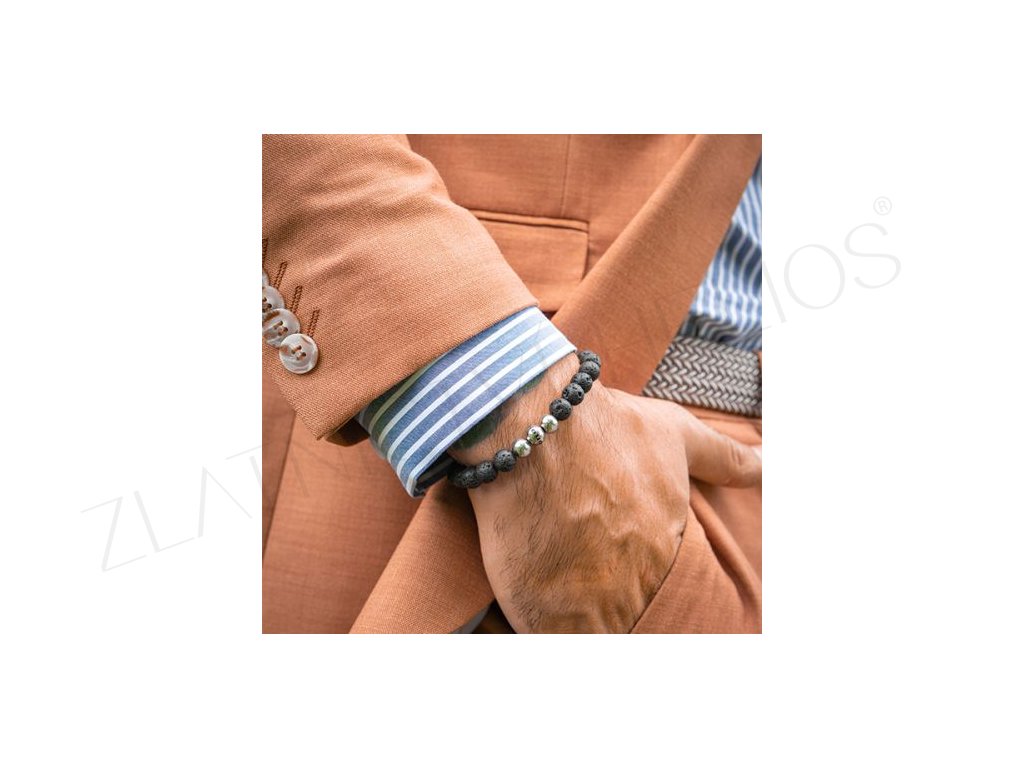 Náramok z lávových kameňov a chirurgickej oceleDĺžka LZdobený prírodnými kameňmi