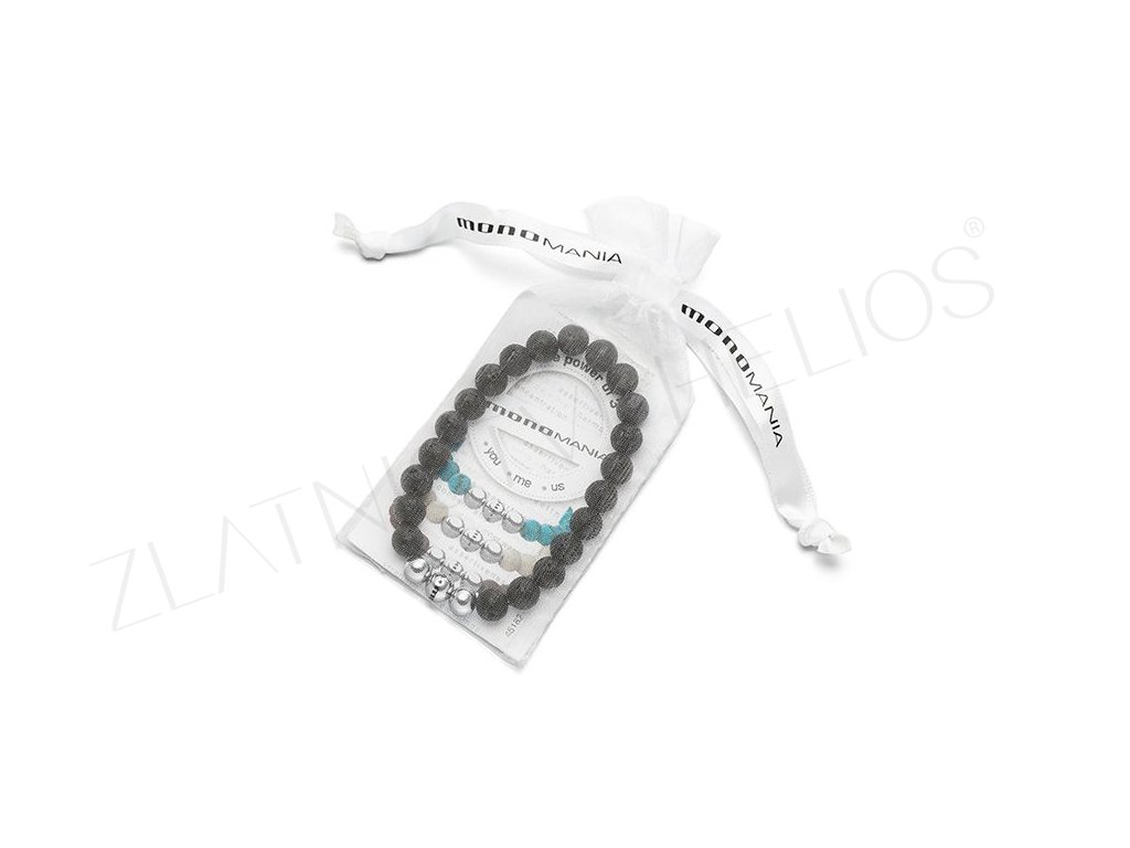 Noste „silu pre nové veci“ s perlovým náramkom od Power of 3! veľká zbierka, energia so sebou. Tento pánsky náramok umne kombinuje čierne korálky vyrobené z pravej lávovej horniny s tromi vysoko leštenými korálkami z nerezovej ocele, ktoré nespôsobujú alergie. Všetky korálky majú priemer cca 8,5 milimetra a sú navlečené na elastickom silikónovom pásiku, ktorý nevyžaduje žiadne lepidlo. Perlový náramok je možné teda veľmi ľahko nasadiť bez zapínania. Tešte sa na skvelý doplnok od MONOMANIA – samozrejme MADE IN GERMANY – ktorý vám dodá potrebnú silu pre každodenný život a bude doručený v ozdobnom organzovom sáčku.