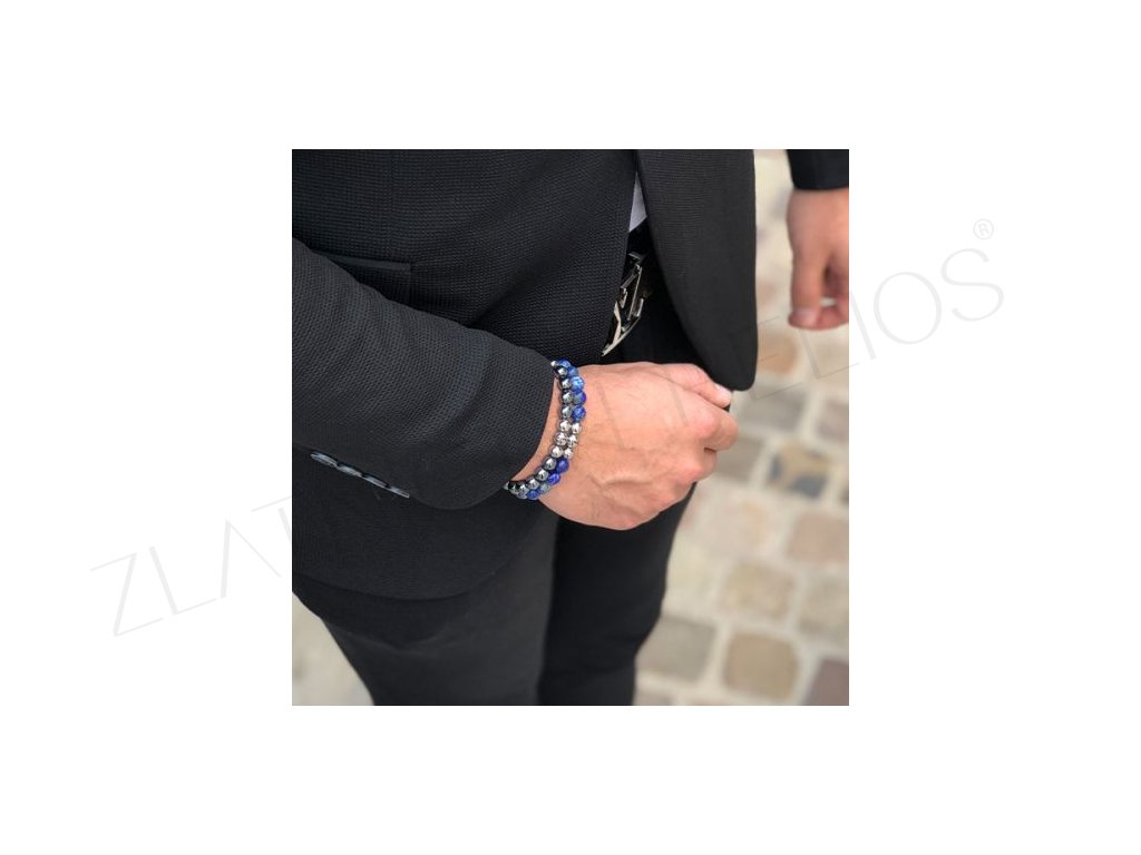 Sila 3! veľký perlový náramok od MONOMANIA znamená bezpečnosť. Pocit, ktorý je jednoducho dobrý. Modré korálky lapis lazuli v kombinácii s tromi vysoko leštenými korálkami z nerezovej ocele, ktoré nespôsobujú alergie, sa postarajú o obzvlášť známy a pritom chladný vzhľad. Všetky korálky merajú približne 8,5 milimetra v priemere a sú navlečené na gumičke. Perlový náramok sa ľahko nasadzuje bez zapínania a pohodlne sa nosí. Je úplne bez lepidla a samozrejme MADE IN GERMANY. Šperk je dodávaný v elegantnom bielom organzovom sáčku. Pánsky náramok je dostupný v celkových dĺžkach 16, 18 a 20 centimetrov, takže si určite nájdete ten pravý pre vás!